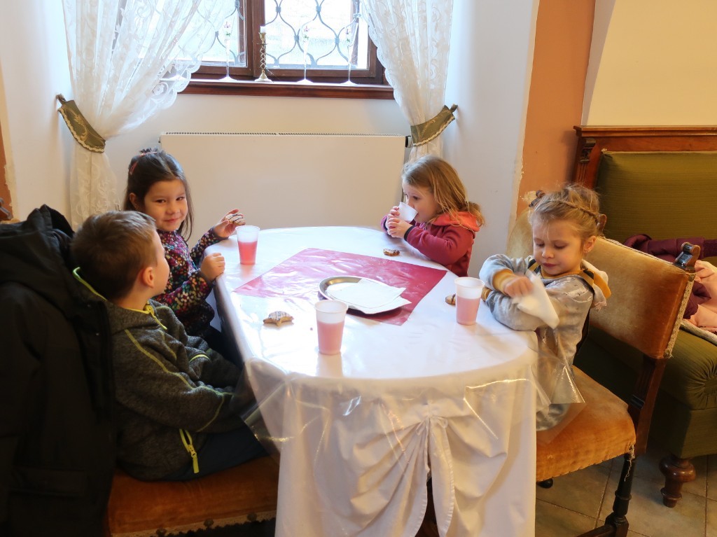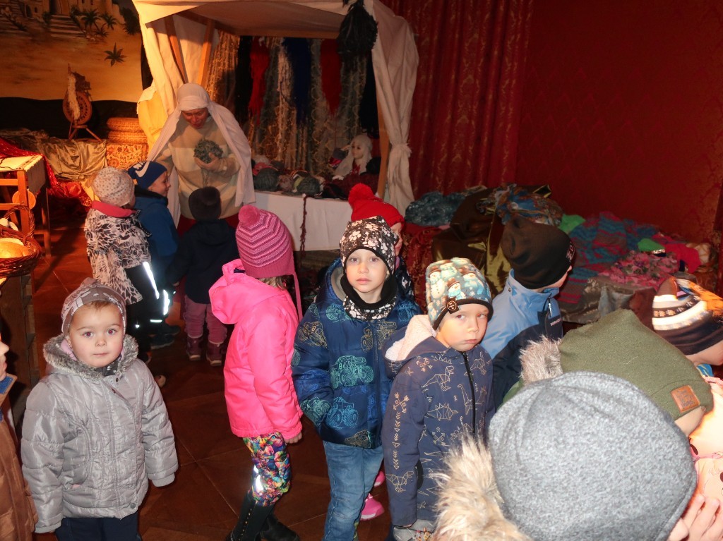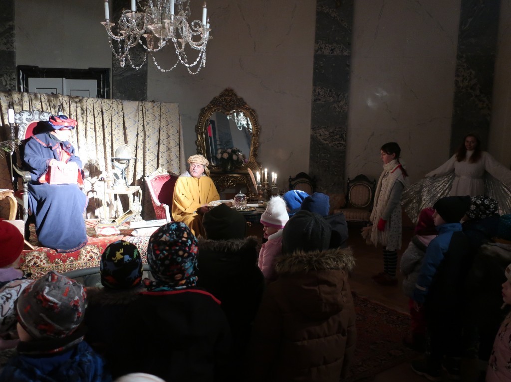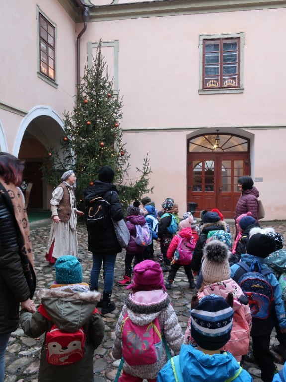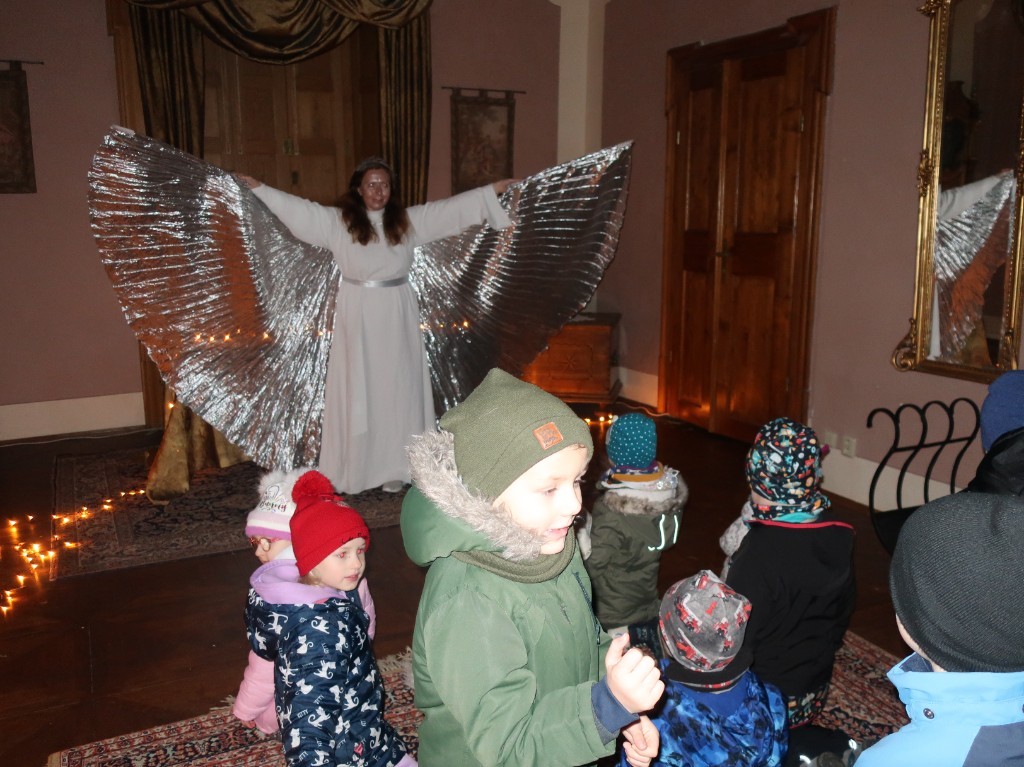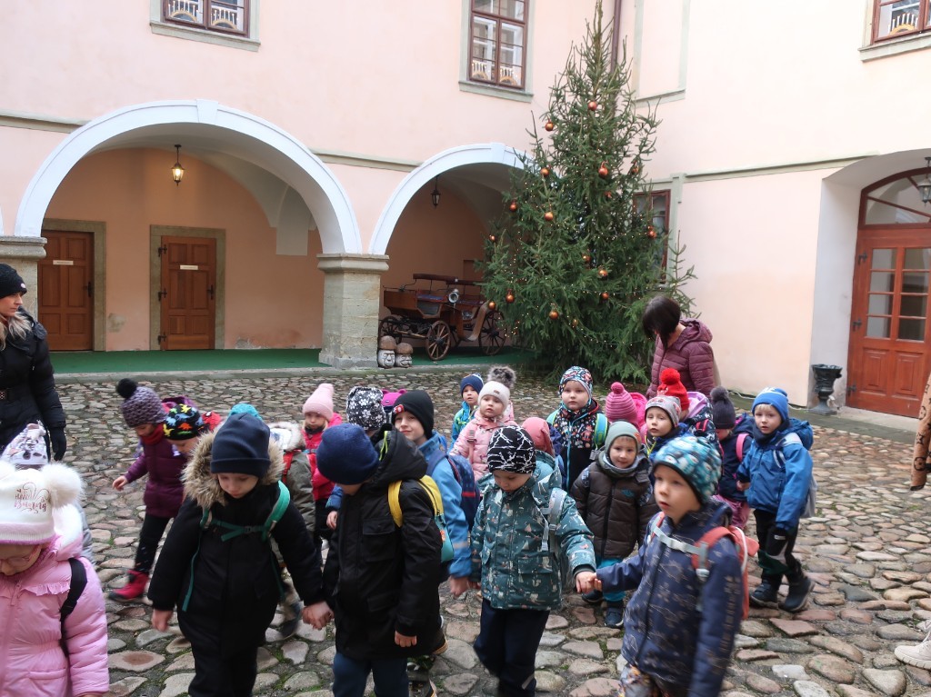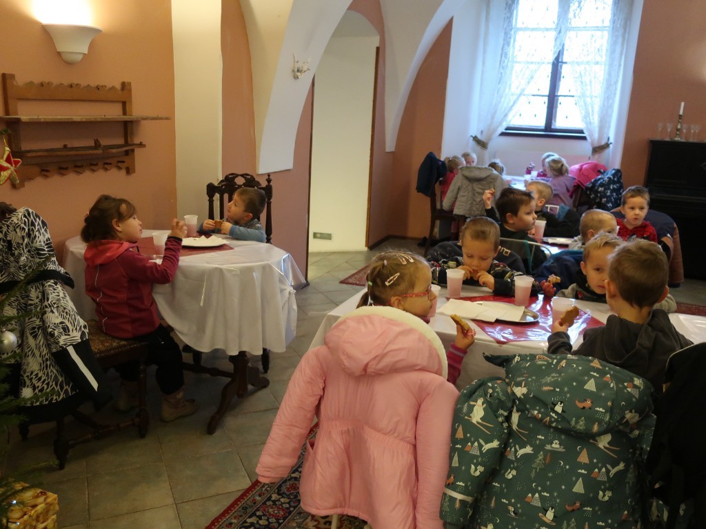 S andělem jsme prošli krásně vyzdobený zámek a formou příběhu docestovali až k Ježíškovi do Betléma. V cukrárně se děti občerstvily a po té ještě zašly na pohádkovou výpravu s hádankami.