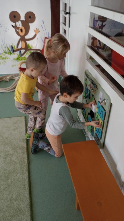 V rámci Dne naruby si Zajíčkové užili hry a svačinu ve třídě Soviček. A společně se všemi soutěžili na zahradě ( viz fotogalerie).